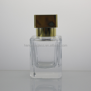 Botella de spray de perfume de vidrio transparente de diseño personalizado Vacío 30ml 50ml 100mL Capacidad cuadrada Tipo de sellado